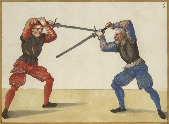 Opus Amplissimum de Arte Athletica (MSS Dresd.C.93/C.94), folio 24V Glosa. Nota y entiende que hay dos colgantes a cada lado. Una superior [Oberhengen] y una inferior [Underhengen], y que con ellas puedes ir bien sobre la espada del oponente. Se originan de los ataques superiores [Oberhaw] y de los ataques inferiores [Unterhaw]. Cuando sucede que … Continue reading Hengen (Colgantes)