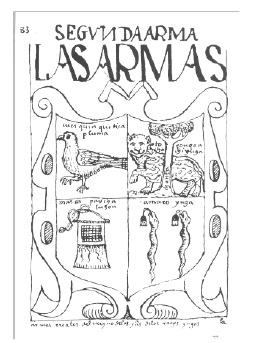 Figure H — Coat of arms of the Inca according to Guamán Pola (1613). <<Second arm. The arms Curiquinquitica pluma. Otorongo achachi ynga. Mascaypacha tuson. Amaro ynga. Royal arms of the kingdom of the Indies of the Incan rulers there>>. [Gentile, M. (2017) El Amaru como emblema de los Incas del Cusco (Siglos XVI-XVII), p. 300.]
