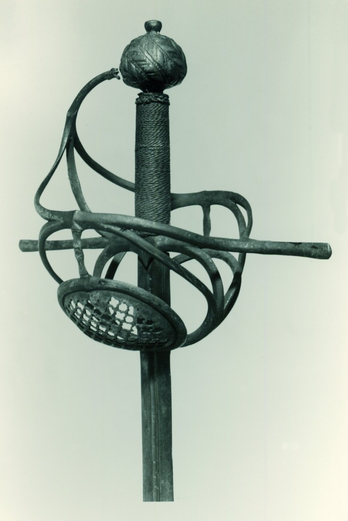 El arma icónica de los mosqueteros de Alejandro Dumas, la espada ropera (“rapier” en inglés) es el término asignado a cierta clase de espada portada por una persona cuando iba en ropa de civil. El término ropera aparece por primera vez en las “Coplas de la panadera” de Juan de Mena, escritas entre 1445 y 1450, y posteriormente en el “Inventario de Objetos del Duque D. Álvaro de Zúñiga” que data de 1468 (1). En el francés medio figura por primera vez como espee rapiere en 1478, término que eventualmente se convertirá en el rapière y rapier del francés e inglés modernos respectivamente.