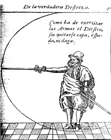 Figura 10. Tomada de Pacheco de Narváez (1600). Las grandezas de la espada. [Ilustración]. Madrid, herederos de Juan Iñiguez de Leguerica. En Saucedo Morales, F. (1997) Jerónimo Sánchez Carranza y la Escuela Española de Esgrima, Madrid, p. 229.