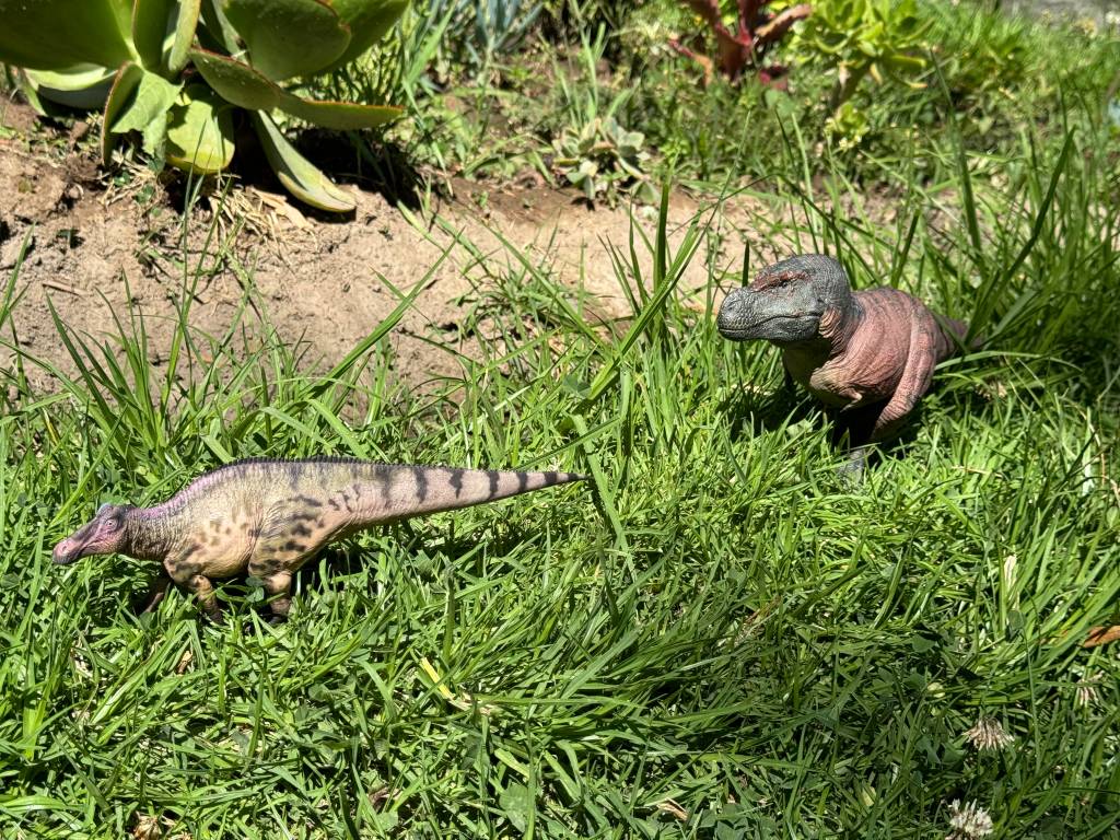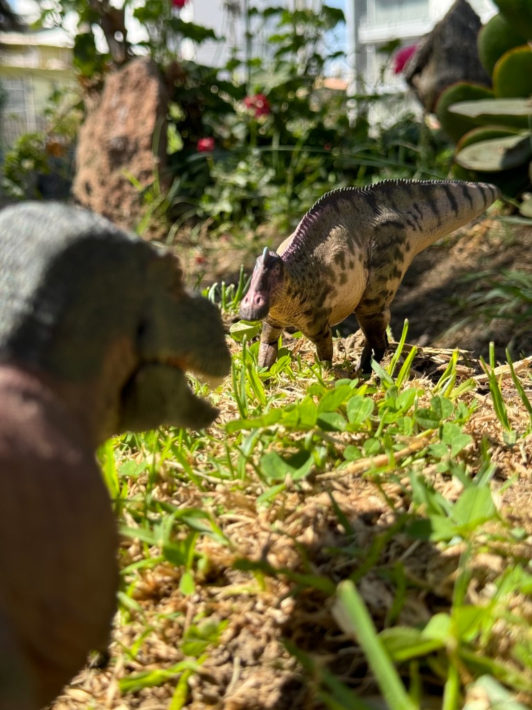 Hoy es el inicio de una nueva sección en mi blog, y estoy muy emocionado por eso. Mi fascinación por los dragones comenzó por los dinosaurios, formidables criaturas que me encantaron desde los cuatro años. Como muchos niños, yo tenía montones de juguetes de dinosaurios, a quienes disfrutaba clasificar por especie y asignarles nombres personales. Pero, así como fui creciendo, fui también regalando poco a poco mi colección a otros niños, aunque claro, la nostalgia hizo que decidiera quedarme con tres figuras muy pequeñas que tenían un gran valor emocional para mí. Desde entonces, y por cuestiones económicas, había tratado de rehuir al coleccionismo, cayendo en unas tres ocasiones: primero con figuras del juego de mesa Heroclix por un par de años, luego con los dragones (coleccionismo bastante pausado, la mayoría de mis figuras son regalos de amistades) y finalmente con las espadas de práctica para esgrima histórica (esto continúa a la fecha, no lo dejaré nunca pues es mi disciplina para toda la vida). Y creí que eso sería todo, hasta que en unas vísperas de navidad mi enamorada, conocedora de mi pasión por los dinosaurios, me animó a que me comprara unas tres figuras muy bonitas que vimos en una tienda local mientras hacíamos algunas compras navideñas. Eran dos dinosaurios, un tiranosaurio y un anquilosaurio, y un dragón muy parecido al dragón rojo de Calabozos y Dragones, todas hechas de policloruro de vinilo (PVC) duro y de tamaño mediano (ya compartiré algunas fotos de estas figuras en otro post). No eran de ninguna colección particular, y tal vez fue eso lo que aguijoneó mi curiosidad. El modelismo de dinosaurios ha mejorado considerablemente en los últimos años, con piezas cuyo realismo y aproximación a los más recientes hallazgos paleontológicos son admirables, llegando al punto de estar a la par con los debates y disputas en boga en esta ciencia. Allí me dije que me gustaría mucho tener unas cuantas figuras de mis dinosaurios favoritos. Exploré en las páginas de Ali Express y Amazon, y di con la primera figura que ordenaría. KISS, el Tyrannosaurus Rex (Mountain version) de la compañía británica REBOR. Y como el buen Bob Ross solía decir, todos necesitamos un amigo. Vi la pareja de dilofosaurios de la compañía china Haolonggood, y me dije que debía tenerlos. Y así comenzó todo.