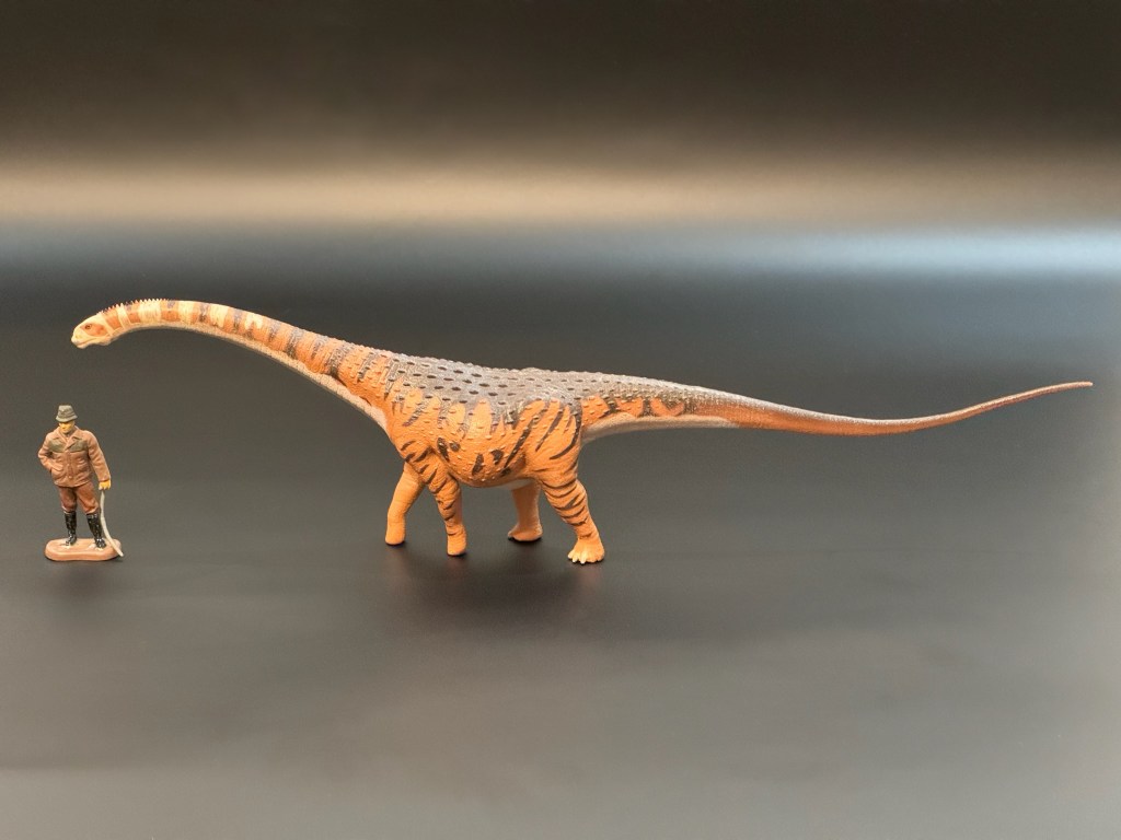 Safari Ltd no se caracteriza por crear modelos de dinosaurio de una escala en particular. De todos modos, con 36 centímetros de largo y una longitud real estimada de 11 metros, el Malawisaurus de Safari Ltd cae en la escala 1:30.
